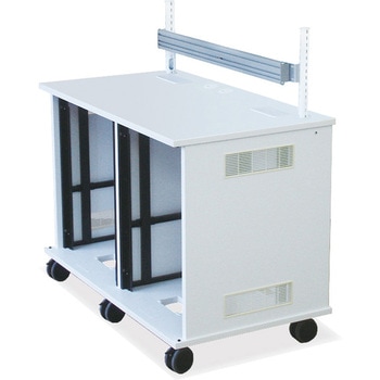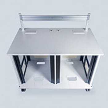 棚板の取付位置は、EIAピッチで上下移動できるので、機器と棚板との隙間なく取り付けられます。EIA下付きとなります。棚板はオプション(別売)です。