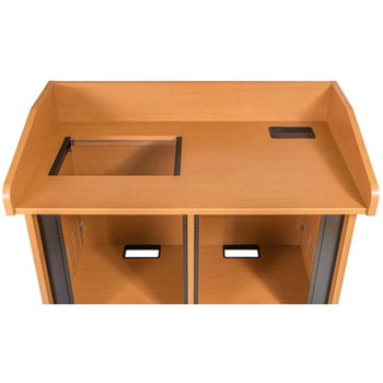 底板配線孔(前面)手前の底板部分は着脱できます。機器にケーブルを接続した後からでも卓内に収納できるので、機器収納後に、卓内の狭い場所で配線作業をする必要はありません。