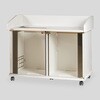 ガラス扉は270度の角度で開閉します。機器を収納する時や収納した機器を操作する時に、ガラス扉が邪魔になりません。