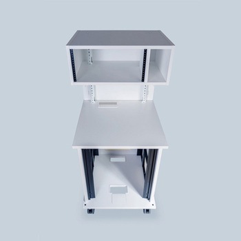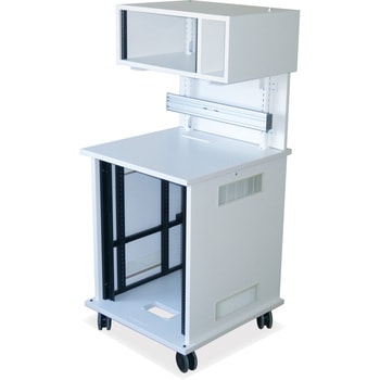 棚板の取付位置は、EIAピッチで上下移動できるので、機器と棚板との隙間なく取り付けられます。EIA下付きとなります。棚板はオプション(別売)です。