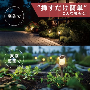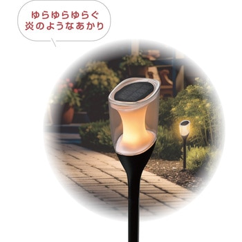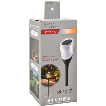 ソーラー充電で簡単に設置できる屋外用のガーデンライトです。炎がゆらめくような温かみのある光が楽しめ、庭先や花壇の演出に最適です。明暗センサーで自動点灯し、防水性能IP65で雨天時でも安心して使用できます。約30cm・45cm・60cmの三段階で高さ調整ができ、さまざまな場所に設置しやすい設計です。