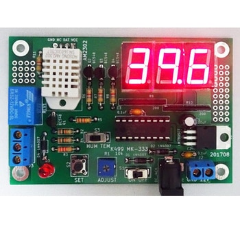 設定した湿度/温度でリレーを動作させる湿度/温度センサーのキット湿度/温度センサーAM2302を使用し、設定した湿度や温度でリレーに接続した装置を駆動させることができるキットです。本キットは、はんだ付けが必要です。7セグメントLED3個により湿度または温度を表示リレーにより100V機器の制御が可能リレーを駆動する湿度/温度をボリュームで設定可能設定値付近でリレーの駆動をばたつかせないためのヒステリシス機構を2種類内蔵(時間モードと数値モード)