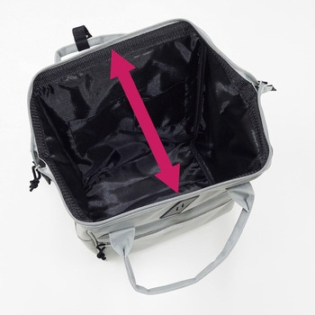 出し入れしやすいガマグチタイプのリュックを使った防災セット。バッグの口がぱかっと開くので中身の確認や出し入れがしやすいです。