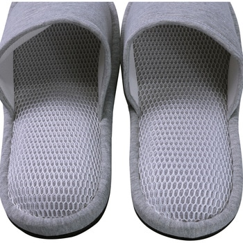 Wメッシュ大きいスリッパです。中敷きは2層構造のハニカムメッシュになっており、通気性に優れ、弾力のある快適な履き心地。甲部分にはやさしい肌触りのニット生地を使用しています。様々なシーンに馴染みやすいシンプルデザインで、大きな足もすっぽり収まるゆったりサイズのスリッパです。