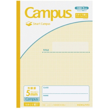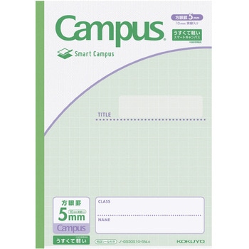 うすくて軽いキャンパスノート<スマートキャンパス>(セミB5・5mm方眼罫10mm実線入り・30枚)従来のキャンパスノートより平滑度の高い紙を使用しており、書き心地なめらか