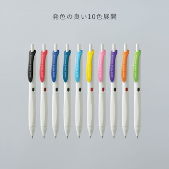 使いやすくてシンプルなデザインの文具が迷わずに選べる<GOOD>シリーズです。さらさら書けて、発色が良いゲルインクボールペンです。先端ボールの回転が安定する構造になっており、書き出しからスムーズで、均一な線が書けます。インク処方の工夫により速く乾きます。グリップに面を設けることで指がフィットし、安定して握ることができます。