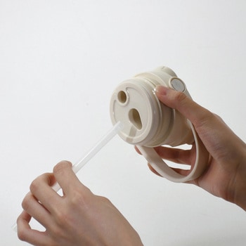 内びん:ステンレス鋼、胴部:ステンレス鋼(アクリル樹脂塗装)、ふた栓・飲み口キャップ・吸い口カバー:ポリプロピレン(耐熱温度100℃ 耐冷温度-20℃)、吸い口:AS樹脂(耐熱温度80℃ 耐冷温度-20℃)、ストロー:ポリエチレン(耐熱温度70℃ 耐冷温度-20℃)、パッキン・ストロー差込口:シリコーンゴム(耐熱温度180℃ 耐冷温度-20℃)、ハンドル:TPE