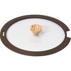 強化ガラス製器具(全面物理強化)、縁部:シリコーンゴム(耐熱温度200℃)、つまみ:フェノール樹脂(耐熱温度150℃)
