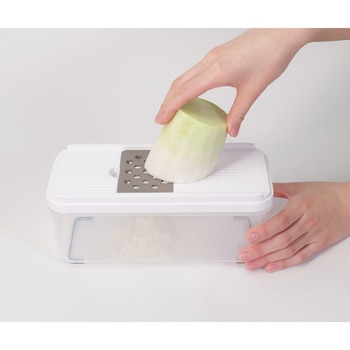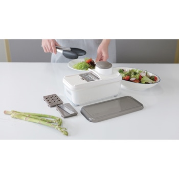 1台6役の多機能性!スライサー、細切り、千切り、すりおろしなど複数のカッティング機能、水切り、保存。