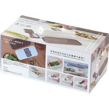 ザル・ボウル・ふた:ポリプロピレン(耐熱温度100℃耐冷温度-20℃)、プレート・プレートベース:ABS樹脂(耐熱温度80℃ 耐冷温度-20℃)、安全ホルダー/ホルダーガイド:ポリプロピレン(耐熱温度100℃ 耐冷温度-20℃)、野菜押さえ:ABS樹脂(耐熱温度80℃ 耐冷温度-20℃)、すべり止め:熱可塑性エラストマー(耐熱温度70℃ 耐冷温度-20℃)、金属部:ステンレス鋼