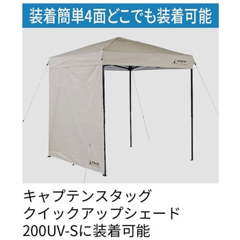 クイックアップシェードに取り付けて日差し・雨風の吹き込みをカットするサイドパネルです。キャンプサイトのプライバシーの保護にも役立ちます。パネル裏面は暑い日差しを防ぐシルバーコーティングを施しています。装着が簡単で、4面どこでも装着可能です。別売のポールとロープでひさしに早変わり