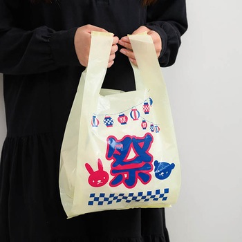 大きな「祭」の文字が目を引く、可愛く楽しいレジ袋です。