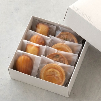 人気のグレイッシュスタイルギフトボックスに、バウムクーヘンやホールケーキにおすすめのサイズが登場!マドレーヌが8個程度入る正方形タイプのギフトボックスです。