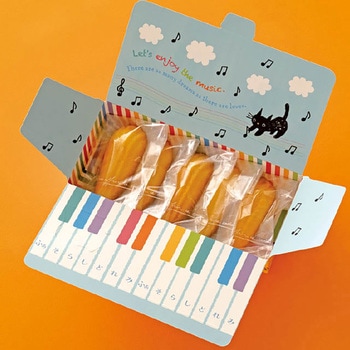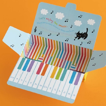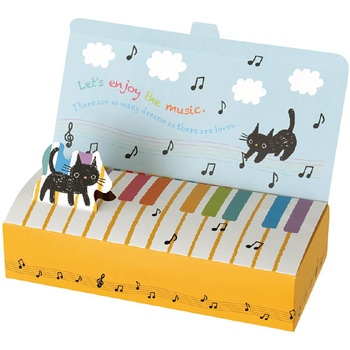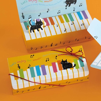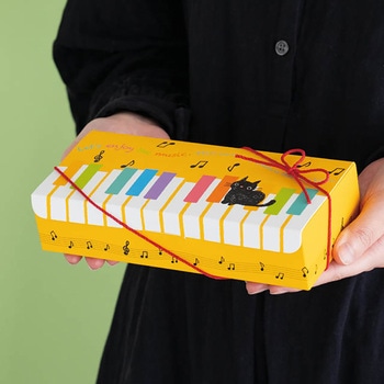 カラフルな鍵盤の上のクロネコと音符のデザインが可愛いギフトボックスです。