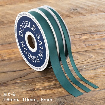 ツヤのあるダークグリーンの両面サテンリボン(6mm幅)です。