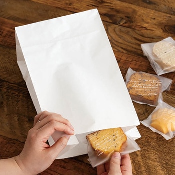 晒(さらし)クラフト紙製の白の無地角底ペーパーバッグ(紙袋)です。