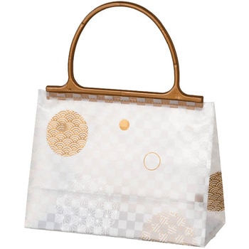 白の市松柄に青海波や麻の葉などの和柄デザインをあしらったハンドル付ギフトバッグです。