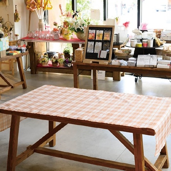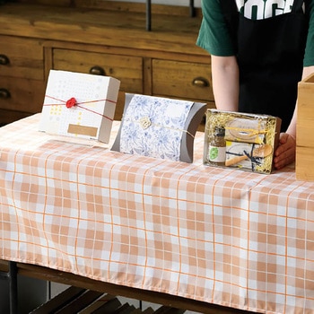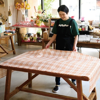 ライトブラウンのチェック柄がナチュラルで可愛いディスプレイクロスです。