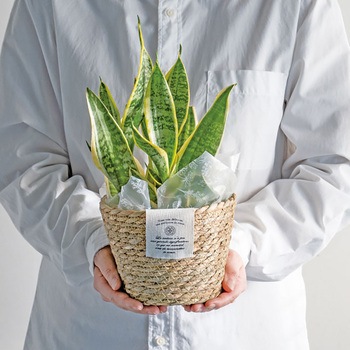 自然素材のいぐさ(ラッシュ)を使用した4号苗サイズのラウンドバスケットです。