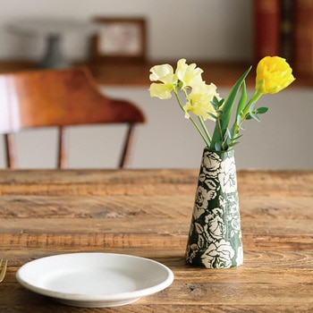 手描き風の細かい花柄が可愛い、陶器のフラワーベース(花瓶)です。