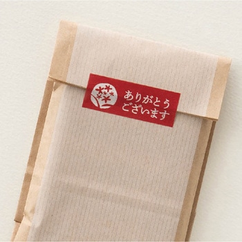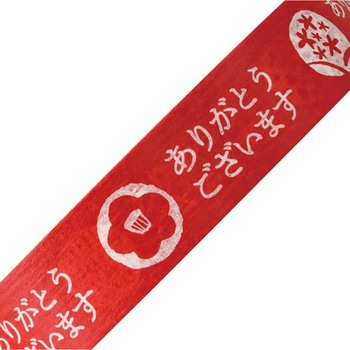 落ち着いた赤に梅の花と「ありがとうございます」のテキストが入った和風デザインが可愛い紙製サンキューテープ(マスキングテープタイプ)です。