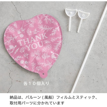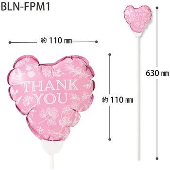 植物柄に「THANK YOU」のメッセージをあしらったピンクのハート型バルーンフラワーピックです。