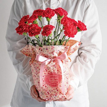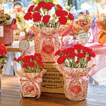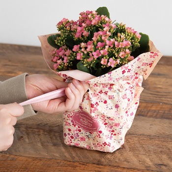 6号苗サイズのピンクのリボン付ポットカバー(鉢カバー)です。
