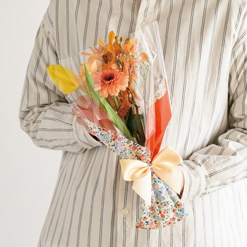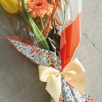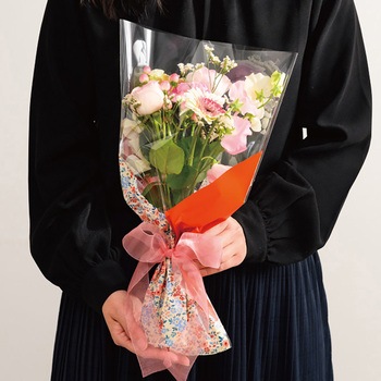 小花柄と赤の切り替えが可愛い花用OPPギフトバッグです。