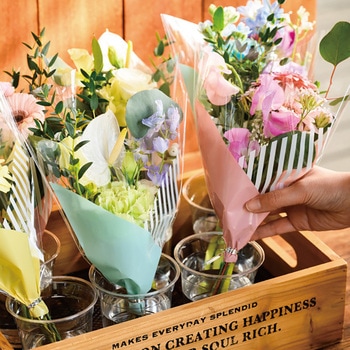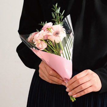 可愛いパステルピンクのミニブーケ用OPPスリーブバッグです。