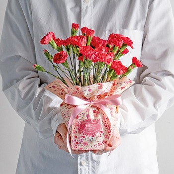 4号苗サイズのピンクのリボン付ポットカバー(鉢カバー)です。