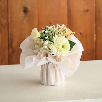 そのまま飾れるスタンディングブーケにおすすめの白系のラッピング資材です。