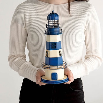 アンティーク調のデザインがおしゃれな装飾用のブリキ製の灯台です。