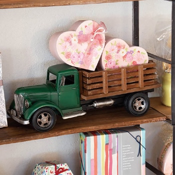 アンティーク調のデザインがおしゃれな装飾用のブリキ製のトラックです。