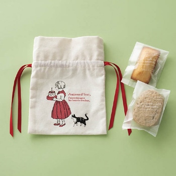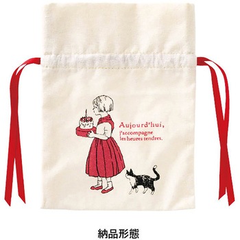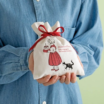 売上金の一部がチャリティーとして寄付される布製のリボン付巾着バッグです。