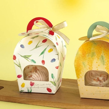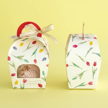 チューリップがデザインされた使いやすい窓付きのギフトボックスです。