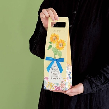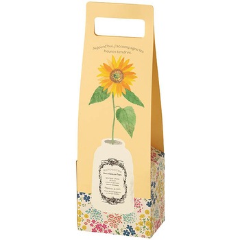 花瓶に挿したひまわりがデザインされたハンドル付のギフトボックスです。