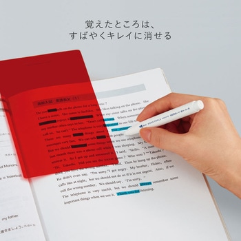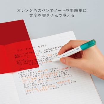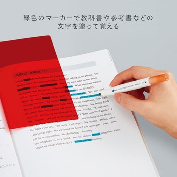 使いやすくてシンプルなデザインの文具が迷わずに選べる<GOOD>シリーズです。塗って覚えるマーカーと、書いて覚える細字のペンが一体になっているので、これ1本で効率よく暗記ができます。緑色の暗記用ペンは、教科書や参考書などの文字の上から塗って赤いシートを被せれば、文字が隠れます。緑のインクは裏うつりしにくく、ページの裏側まで汚くなるイライラを低減します。また、覚えたところは専用の消しペンを使えば、さっと消して元に戻すことができますオレンジ色のペンは、ノートや問題集に書き込んだ文字を、赤い