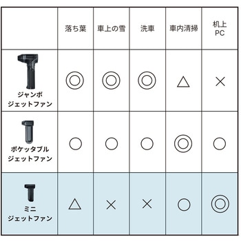 ジェットファンシリーズで最も軽量(一般的なスマートフォンと同等)で女性でも片手にしっくりくる重量とサイズ感。 PC周りや本棚から玄関まで気軽なエアでお掃除するエントリーモデル。