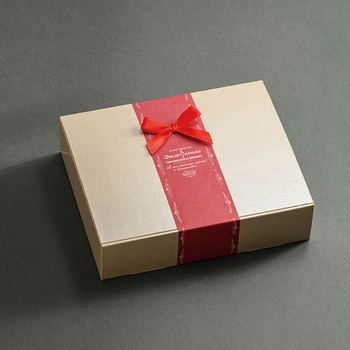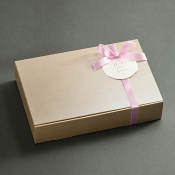 簡単にワンタッチで組み立てられるメタリックベージュのギフトボックスです。