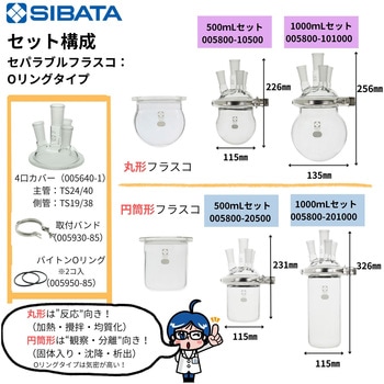 柴田科学で売れ筋のセパラブルカバーとセパラブルフラスコ、Oリングとバンドがセットになりました。必要なパーツをひとつづつ選ぶ手間を省きます。ガラスは不純物の少ないほうけい酸ガラス1級。化学反応や生物反応など幅広い用途にご利用いただけます。Oリングタイプは平面すり合わせタイプと比べると組み立て、洗浄が楽。初めて使用される方にもお勧めのセパフラセットです。