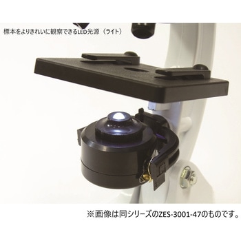 照明は反射鏡とLED光源を選ぶことができます。LED光源を使うと暗い室内でも顕微鏡観察ができます。