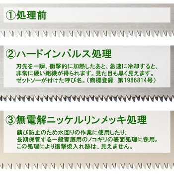 ショート刃なのでバタつかず、スムーズに切り込むことができる。竹の枝を払うときも刃が短い分コントロールしやすく、細竹や破竹だけでなく10cmほどの竹も切断可能。ハードインパルス処理をしているので、素晴らしい切れ味が長く続き、無電解ニッケルメッキを施しているので錆びにくい。