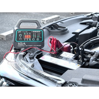バッテリーに接続しACコンセントに差すだけで簡単に充電開始。またバッテリーターミナルを外さずに充電可能で、手間いらず。