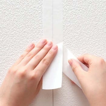 壁紙の凹凸にフィットし、目立ちにくく上から貼るだけの簡単補修テープ。様々な壁紙になじむデザイン