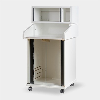 ガラス扉は270度の角度で開閉します。機器を収納する時や収納した機器を操作する時に、ガラス扉が邪魔になりません。