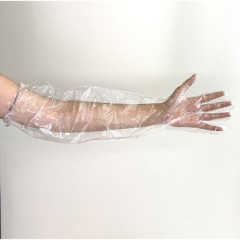 ポリ手袋 PS ポリグローブロング 袖口ゴム付 ピンク パックスタイル