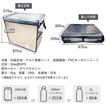 30mm厚のXPSを使用した、高機能な折りたたみ式の保冷容器です。内寸高さ730mmで、カプラーを繋いだままビール樽を保管可能。屋外イベントなど、冷蔵設備がない場所での一時保管などにご利用いただけます。折りたたみ時には厚みが200mmとなり、コンパクトに収納可能。引きずり等に強い底面PVCシート加工。安心・高品質の日本製。