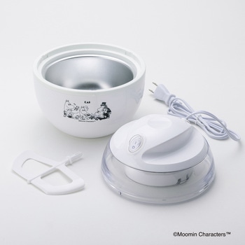くつろぐムーミンたちがプリントされたコンパクトサイズのアイスクリームメーカー。