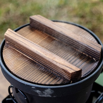 本体:鋳鉄・木蓋:焼杉
