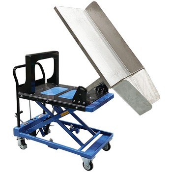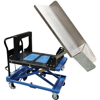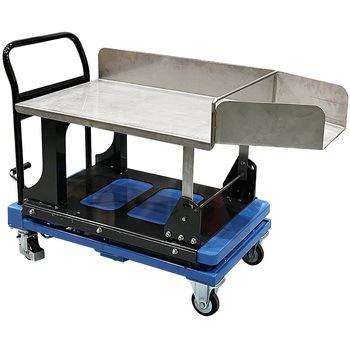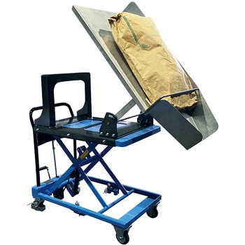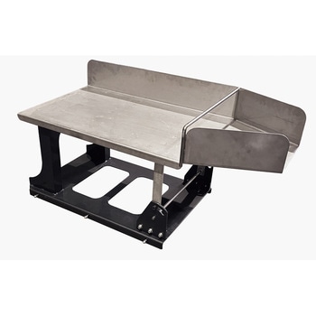 シュートテーブルに袋体を乗せ、ハンドル・レバーを操作することでシュートテーブルに必要な角度がつくことで、スムーズな投入を実現します。
